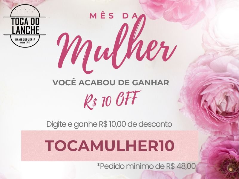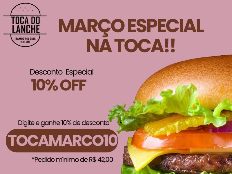 RESGATE O SEU CUPOM E GANHE 10% OFF AO FINALIZAR O SEU PEDIDO Fazendo um pedido na Toca do Lanche